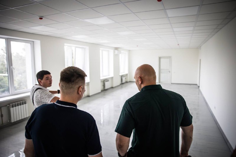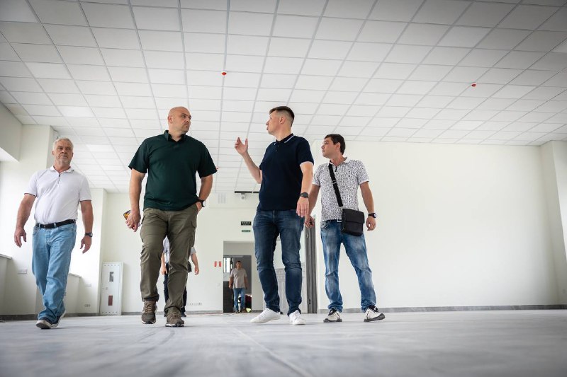 Приїхав подивитися, як проходять роботи. Підрядники звітували – виконали понад 85% запланованого. Майже на фініші оздоблення всередині будівлі. Враховані потреби людей з інвалідністю.
