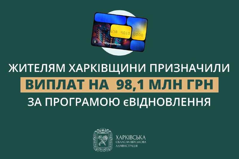 Жителям Харківщини призначили виплат на 98,1 млн грн за програмою єВідновлення