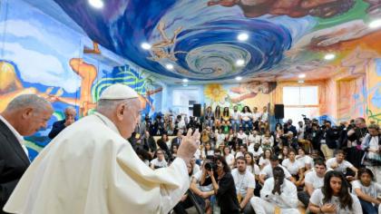 Святіший Отець подарував молоді ікону із зображенням притчі про милосердного самарянина, заохотивши їх не боятися «забруднити руки». «Лише забруднивши руки, ви збережете чистоту своїх сердець», – сказав він. На завершення візиту, Папа помолився із присутніми молитву «Отче наш» та посадив оливкове дерево – символ миру.