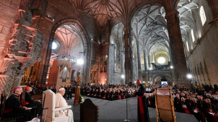 Зустрічаючись із єпископами, духовенством, чернецтвом та семінаристами Португалії, Святіший Отець закликав їх відважно плисти у човні Церкви серед світового моря, плекаючи обопільну єдність та звіщати іншим спасенне любов Христа.