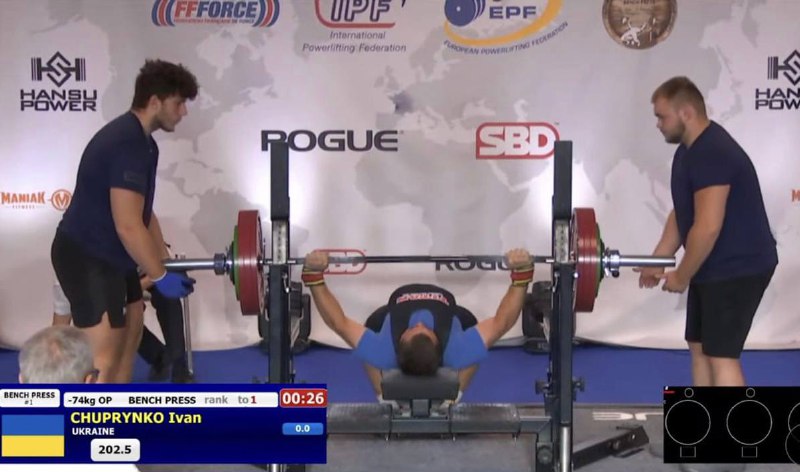 🏆🥇Вінничанин, Заслужений майстер спорту України з пауерліфтингу Іван Чупринко здобув “золото" 3.08.2023, Четвер | 13:42 Автор допису: Голова Вінницької обласної військової адміністрації 🏆🥇Вінничанин, Заслужений майстер спорту України з пауерліфтингу Іван Чупринко здобув "золото" на Чемпіонаті Європи з класичного жиму лежачи. Змагання проходять у м. Мерігнак (Франція). Іван Чупринко (вагова категорія 74 кг) показав результат – 210 кг і посів 1-ше місце на Чемпіонаті. 💪Вітаю нашого спортсмена та його тренера із перемогою на змаганнях! Бажаю подальших успіхів і нових досягнень!🇺🇦 Джерело Друк / PDF