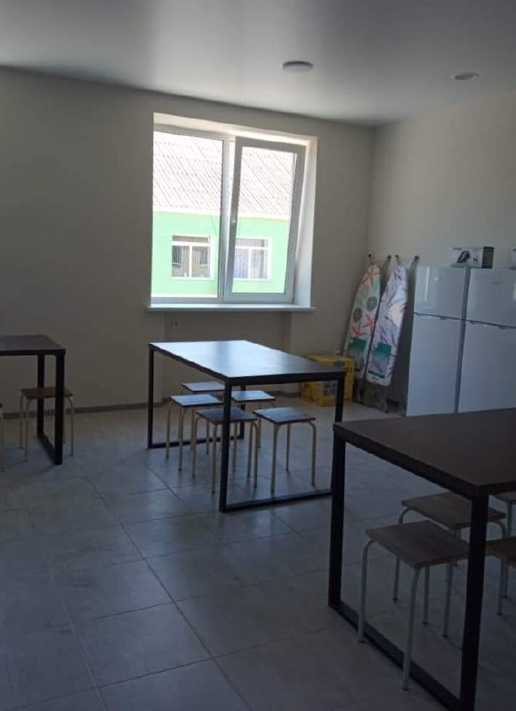 📌Шелтер розрахований на 23 особи. Кімнати на 4-6 осіб: двоярусні ліжка, тумбочки, комод, шафа для одягу. Наявні ковдри, подушки, постіль.