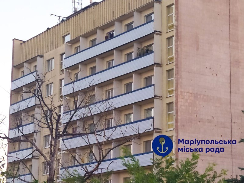 Готель "Дружба". Той готель, який мав би бути прихистком для маріупольців, які втратили своє житло через обстріли росії. Проте, як ми бачимо, готель використовують для місця проживання військових в Маріуполі. На верхніх поверхах регулярно сушиться військова форма.