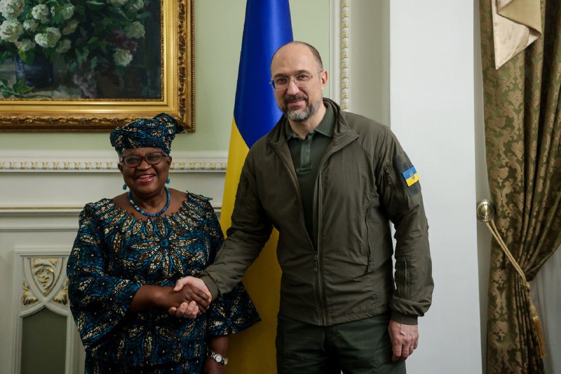 Наголосив на цьому під час зустрічі з директоркою СОТ Нгозі Оконджо-Івеалою, яка відвідала Київ. Подякував СОТ за політичну підтримку та за допомогу в подоланні викликів, які генерує росія, провокуючи світову продовольчу кризу. Закликав посилити міжнародний тиск для відновлення зернової ініціативи. Будемо вдячні за допомогу СОТ в гуманітарному розмінуванні. Нгозі Оконджо-Івеалу наголосила на важливості розблокування зернового коридору. Директорка СОТ також високо оцінила українську програму підтримки малого та середнього бізнесу , що допомагає створити робочі місця в Україні.
