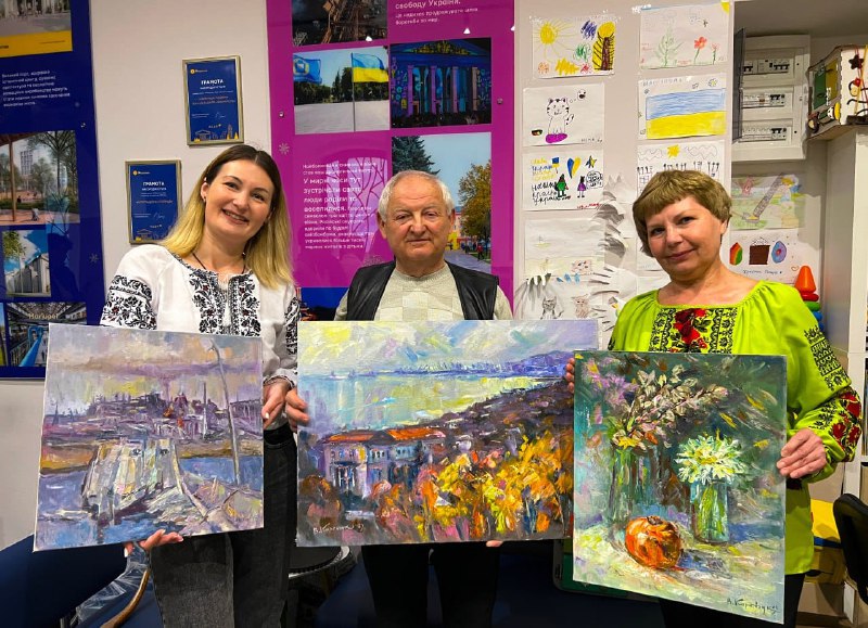 🙌Вже у Львові, куди він виїхав, Василь Коренчук знайшов у собі творчі сили знову почати працювати. Він подарував три свої нові картини центру «ЯМаріуполь».