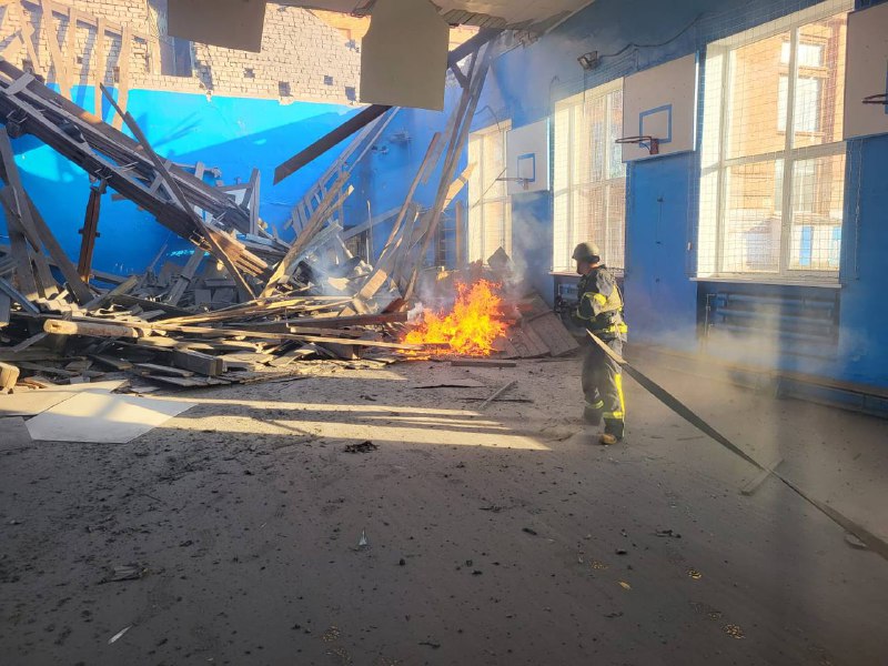 ❗️Окупанти знову завдали артилерійських ударів по Куп’янську. Пошкоджена будівля навчального закладу, у приміщенні спортзалу сталася пожежа