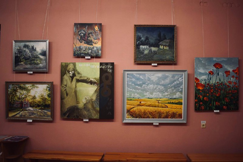 Сьогодні тут відкрилась виставка художніх творів "Мистецтво, породжене війною". До 32-ї річниці Незалежності України.