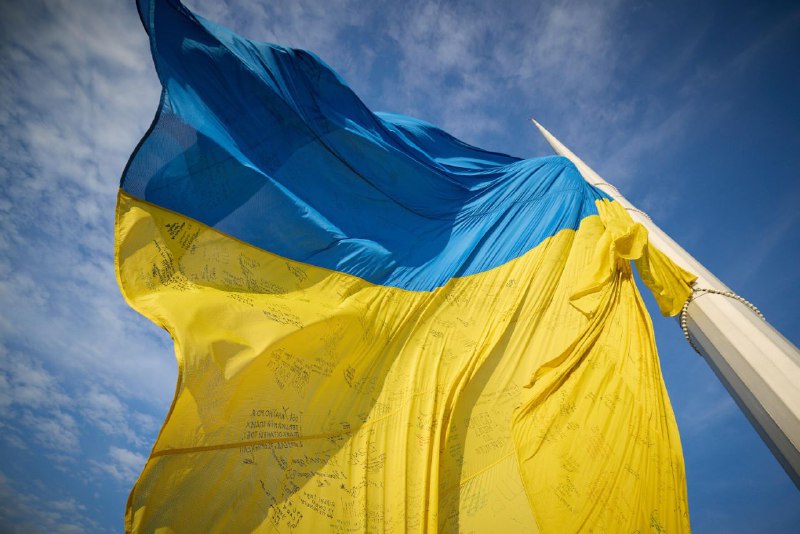 Прапор України сьогодні наповнений значно більшими сенсами, ніж будь-коли раніше. Синій — мирне небо над усією країною. Це безпечне для купання та судноплавства Чорне й Азовське моря. Це могучий Дніпро та відновлене Каховське водосховище.