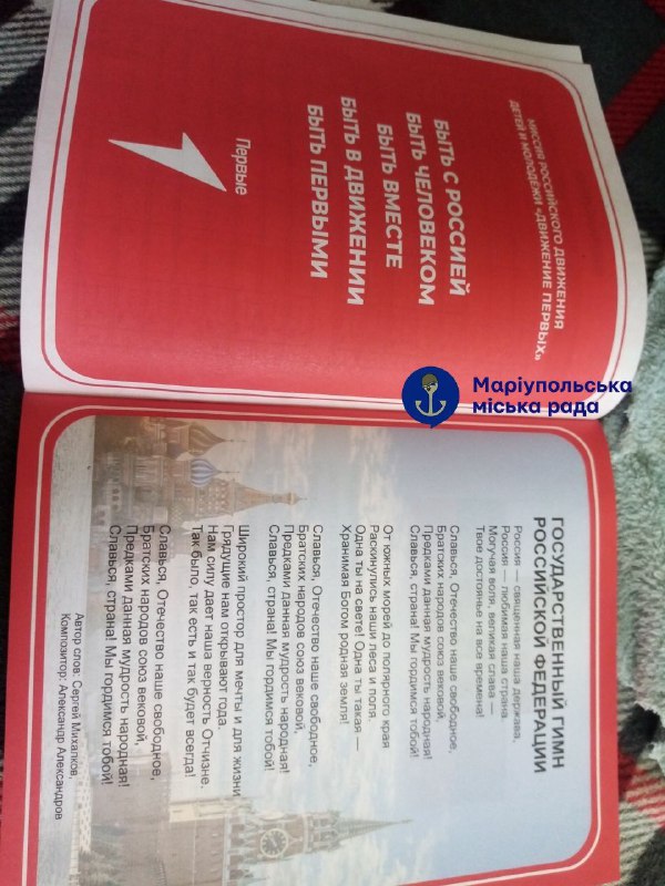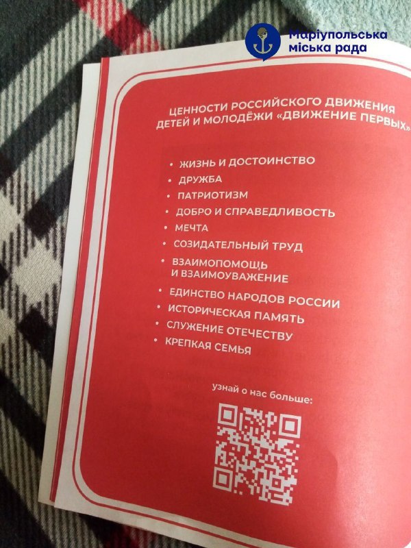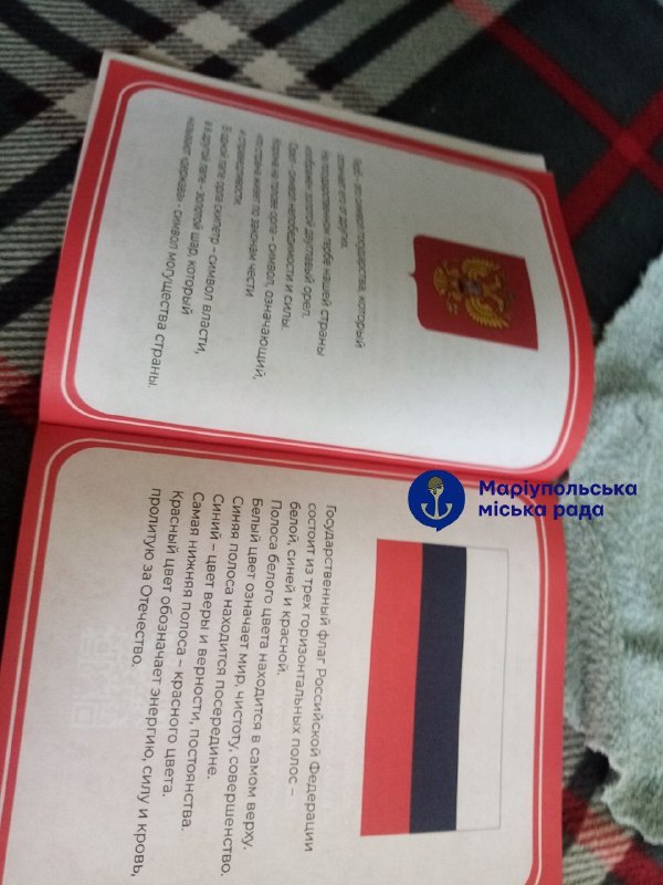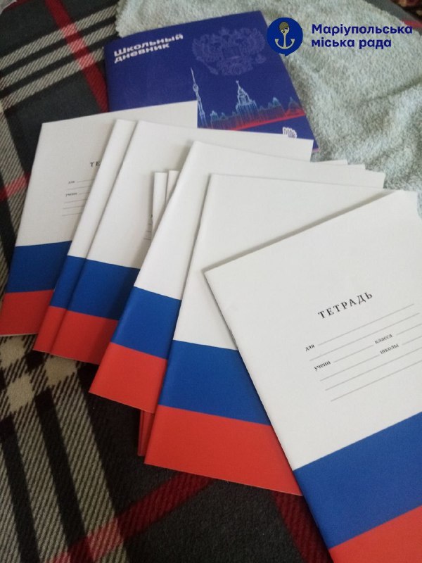 Такі агітаційні атрибути роздали учням перших класів в т.о. Маріуполі. Вчителі- колаборанти які працюють за російським нормативами завдають великої психологічної травми дітям та шкодять їх моральному здоров'ю.