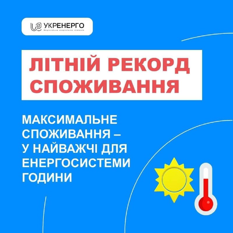 Стан енергосистеми України: 🔹вчора, 29 серпня, був зафіксований новий максимум споживання за це літо; 30.08.2023, Середа | 13:42 Автор допису: Голова Луганської обласної військової адміністрації Стан енергосистеми України: 🔹вчора, 29 серпня, був зафіксований новий максимум споживання за це літо; 🔹енергосистема України брала аварійну допомогу 2650 МВт·год; 🔹через негоду знеструмлено 452 населених пункти, через бойові дії та з інших причин без світла залишаються 425 населених пунктів. Джерело Друк / PDF