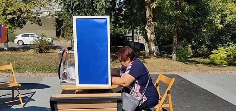 В тимчасово окупованому місті відбуваються фейкові дострокові регіональні та місцеві вибори. Наразі «голосують» люди, які фізично не можуть прийти на виборчі дільниці. Тож так звані виборчі комісії приходять прямо у двори місцевих жителів.