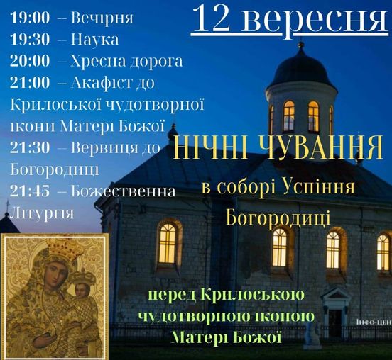 Анонс! 12 вересня у Крилосі відбудуться традиційні нічні чування