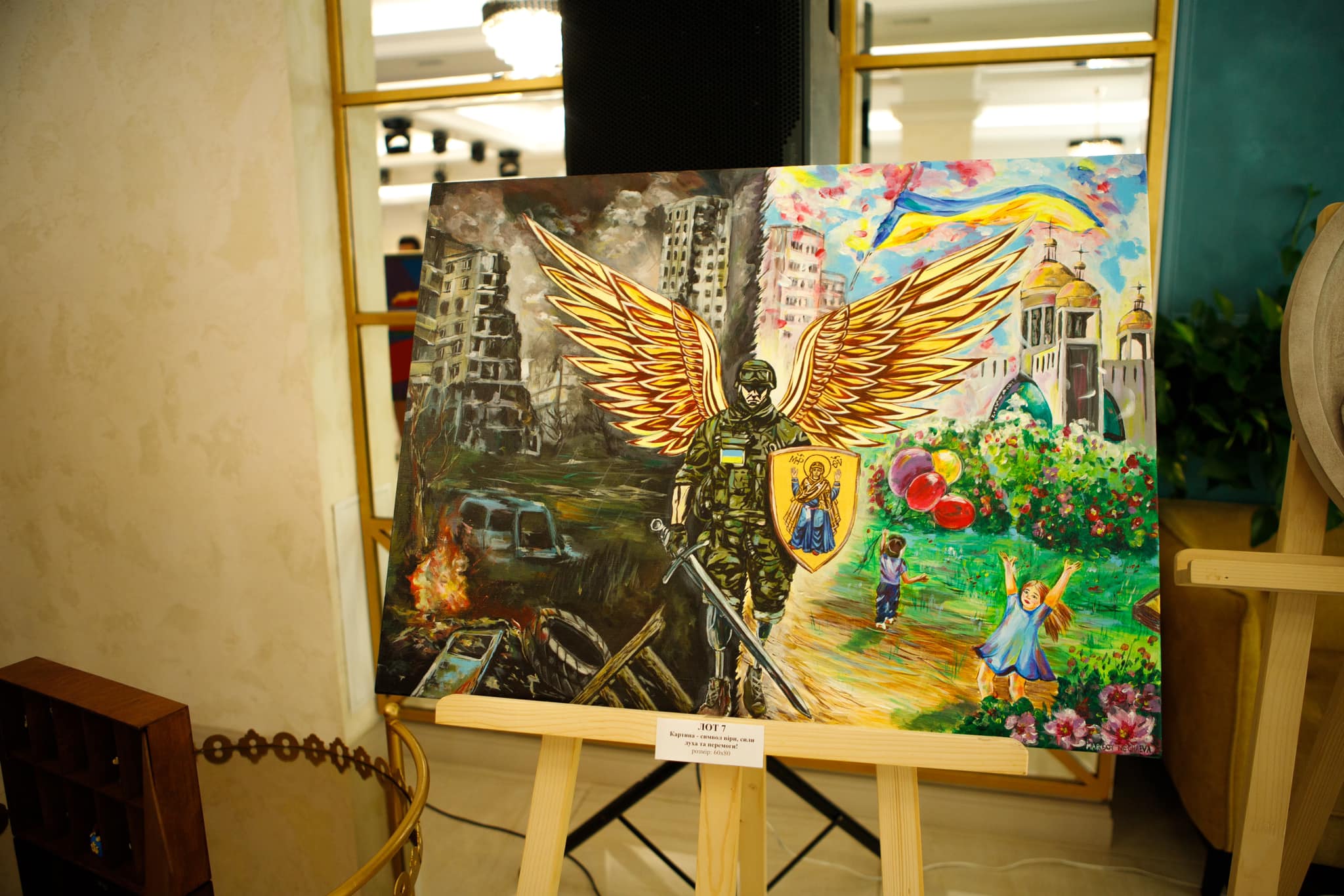 «Данило — мужній воїн, який подолав багато труднощів. Його надихнули слова Блаженнішого Святослава, який при першій зустрічі з ним сказав, що наступного разу той буде бігати. Згодом, коли вони зустрілись, так і сталось, воїна протезували, і він зміг знову стати на ноги. А ця картина є символом віри, сили духу та перемоги», — розповіли про історію даного лоту.