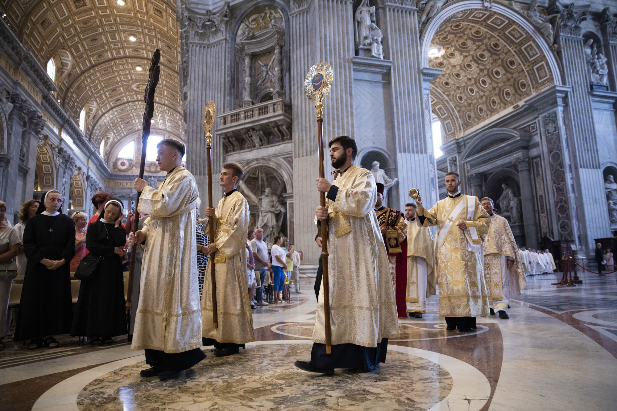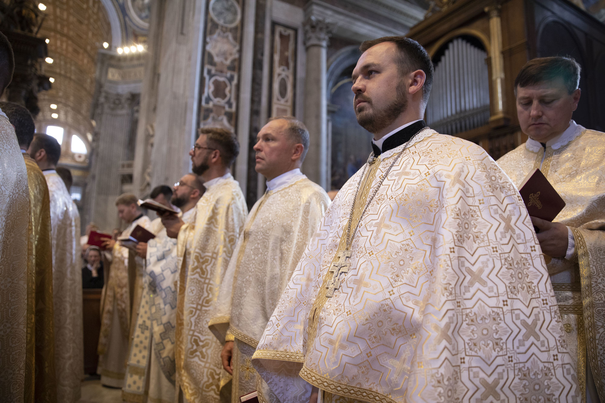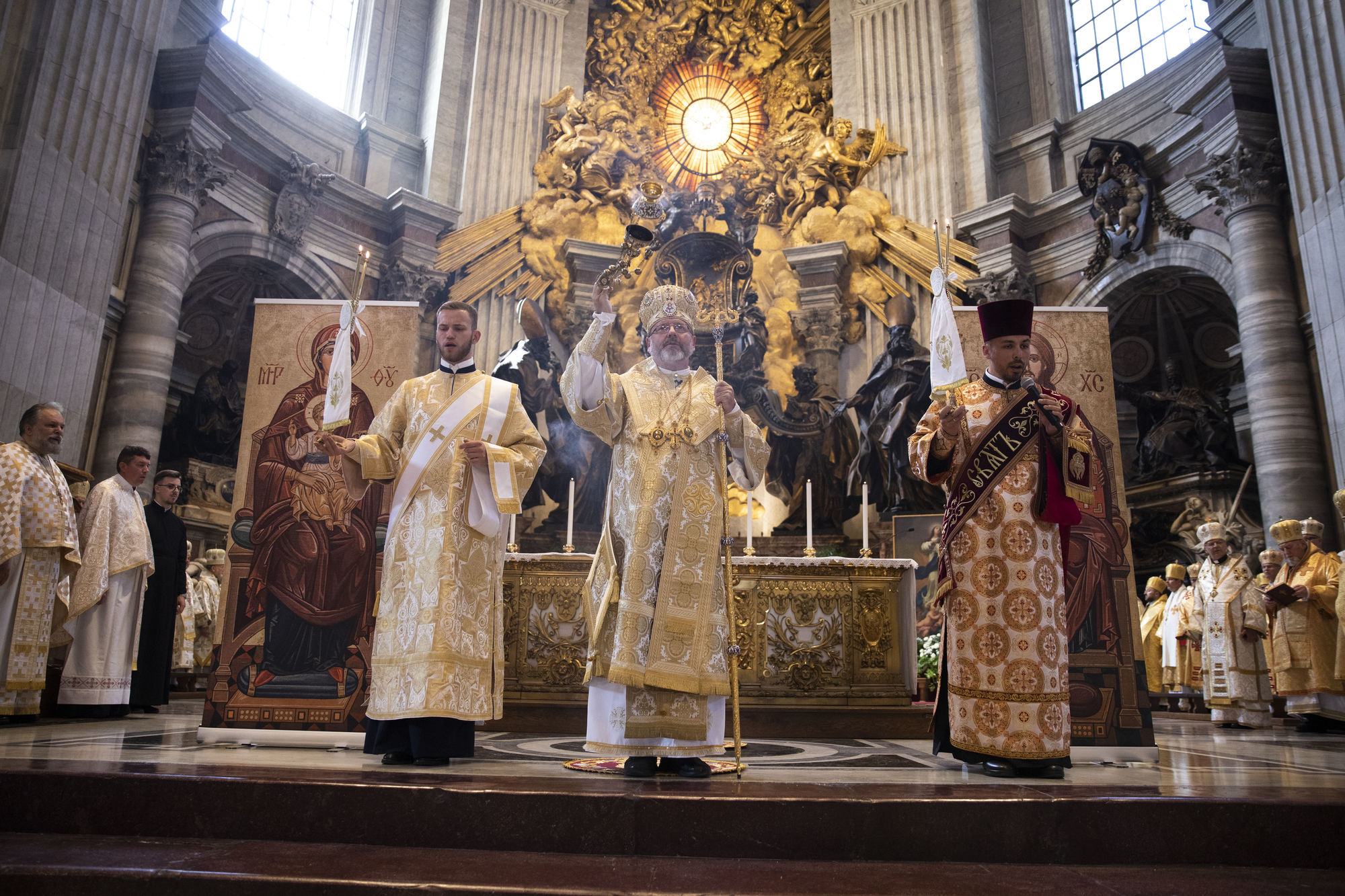 Богослужіння в базиліці Святого Петра у Ватикані завершилося молитвою за Україну «Боже, великий, єдиний» у виконанні чоловічого візантійського хору з Утрехта (Нідерланди).