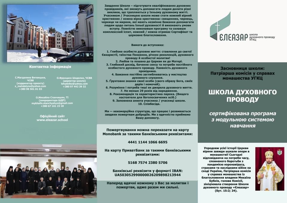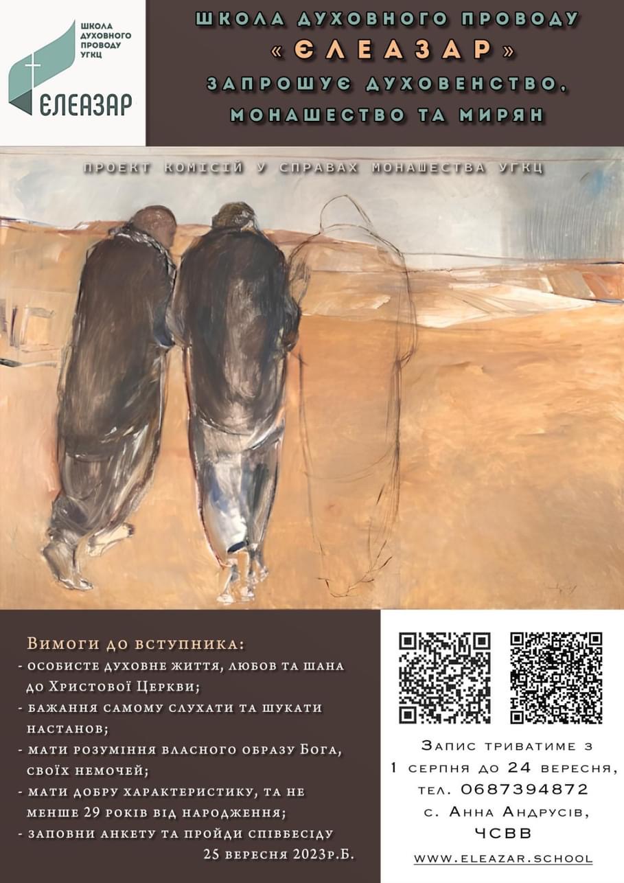 Доєднуйтеся до Школи духовного проводу «Єлеазар» 13.09.2023, Середа | 13:07 Автор допису: Львівська Архиєпархія УГКЦ Запрошуємо духовенство, монашество та мирян на навчання у Школу духовного проводу «Єлеазар». Джерело Друк / PDF