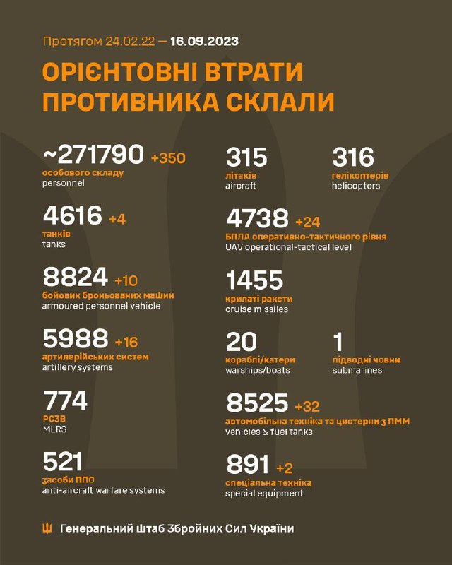 +350 16.09.2023, Субота | 8:24 Автор допису: Голова Луганської обласної військової адміністрації +350 Джерело Друк / PDF