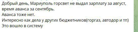 Слід зазначити, що в українському Маріуполі завжди виплачувалася заробітна платня без затримок. Працівники комунальних підприємств та бюджетної сфери мали стабільність та впевненість у майбутньому.