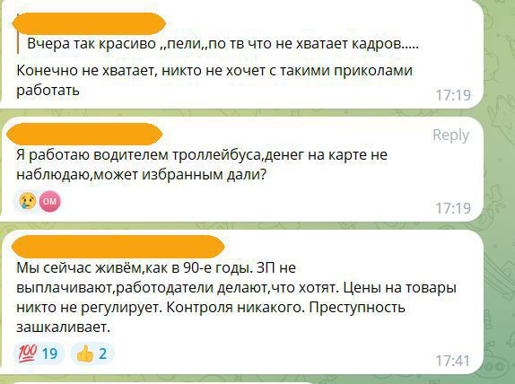 ☝️Несвоєчасні виплати заробітної платні та затримки кожного місяця – стали звичним явищем в окупації. Особливо гостро це відчувають звичайні працівники комунальних підприємств та бюджетної сфери – від електромонтерів до водіїв. Це обурює людей. Результат – нікому працювати, якість обслуговування та вирішення проблем жителів – на нулі. Брак працівників у всіх галузях. Місцеві не погоджуються працювати за низькою зарплатнею, з вічними затримками та жити обіцянками. Невдоволенні навіть і працівники телевізійного каналу, який є рупором пропаганди.