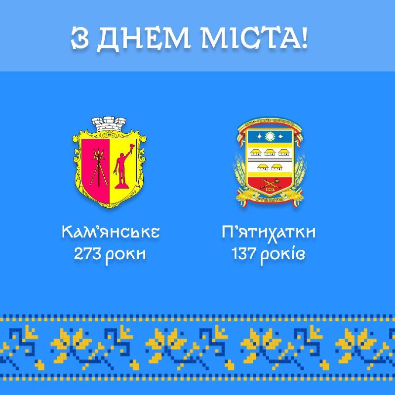 Сьогодні свій день відзначають два міста нашої області – Кам'янське та П'ятихатки.