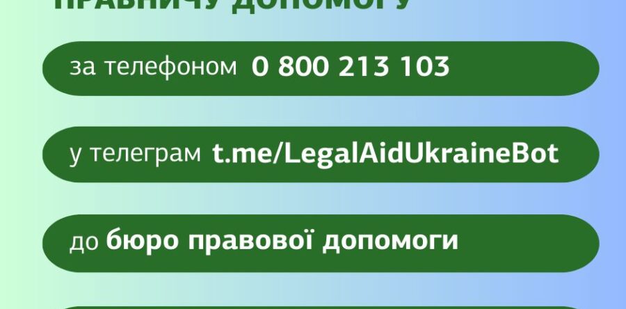 Щоб отримати правову консультацію письмово, напишіть у Telegram-бот: https://t.me/LegalAidUkraineBot (юристи відповідають у робочі дні).
