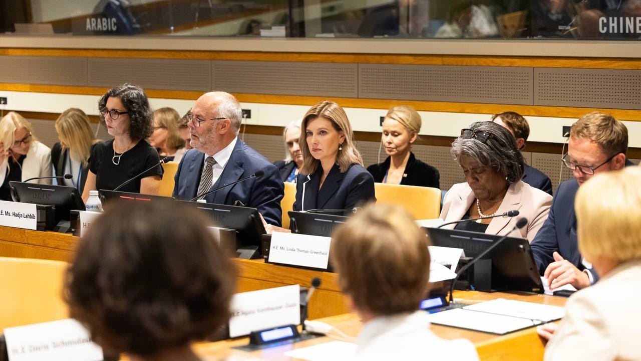 На полях 78-ї сесії Генеральної Асамблеї ООН, яка триває у Нью-Йорку, перша леді України Олена Зеленська взяла участь у заході високого рівня «Боротьба за майбутнє: українські діти у війні».