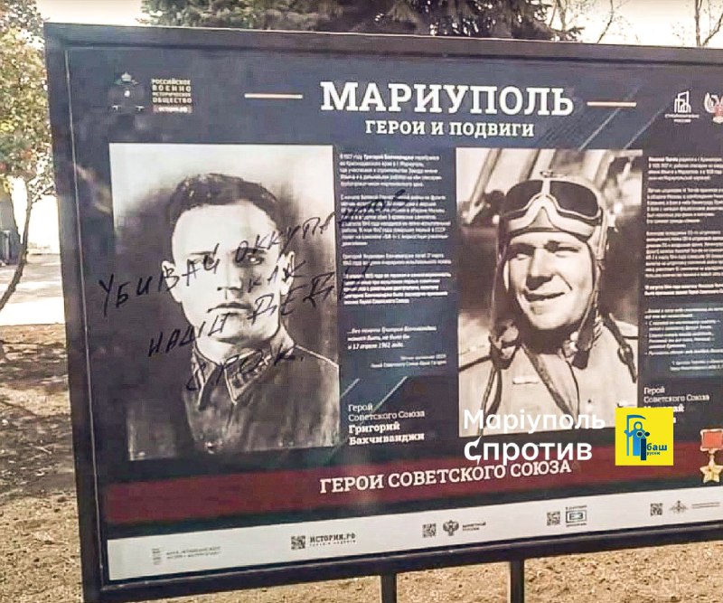 🫡”Убивай оккупантов, как наши деды”. Такі заклики залишають маріупольці в окупації на стендах, які встановили російські загарбники 21.09.2023, Четвер | 13:30 Автор допису: Маріупільська міська рада 🫡"Убивай оккупантов, как наши деды". Такі заклики залишають маріупольці в окупації на стендах, які встановили російські загарбники. Таке їх справжнє ставлення до них та "руського миру", який несе кров, смерті, руїни. Джерело Друк / PDF