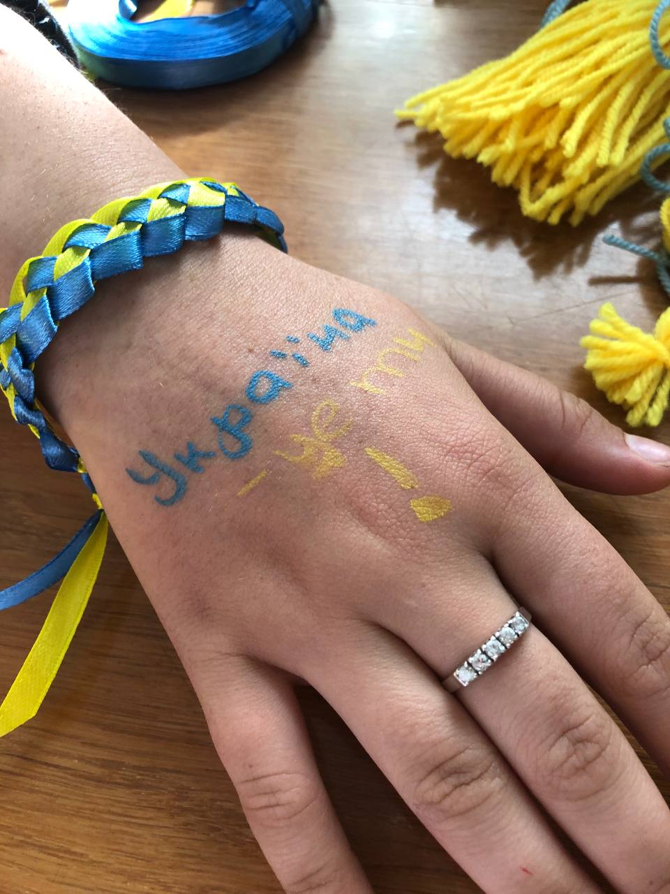 Разом із мисткинею Світланою Перкун учасники зробили один для одного маленьких берегинь, патріотичні браслетики та намалювали українську символіку аквагримом.