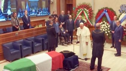 Церемонія прощання відбувається в осідку Сенату Італійської Республіки.