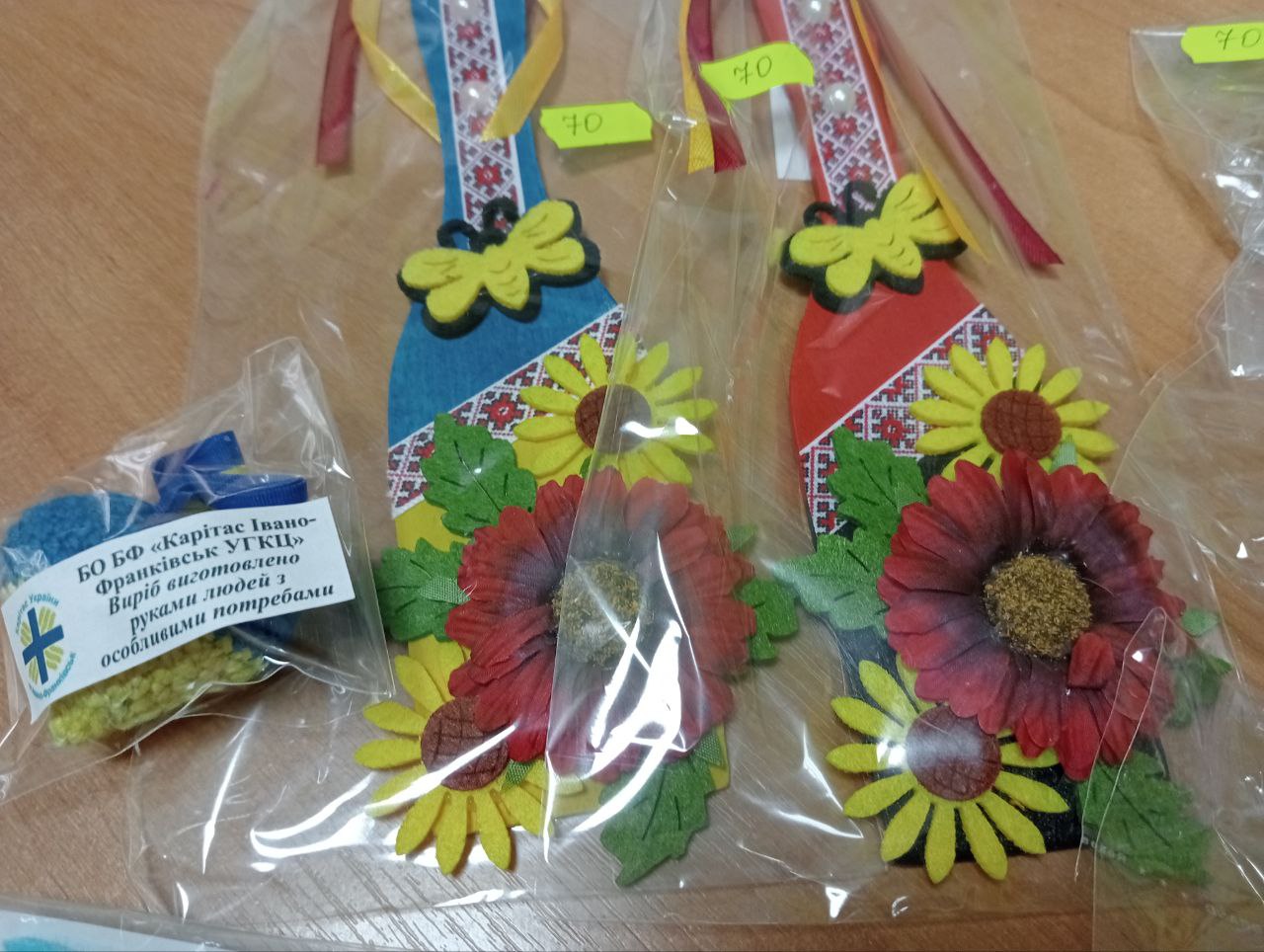 «Протягом останніх тижнів молодь нашого Центру соціальної реабілітації осіб з інвалідністю створювала на вишивальних машинах серветки, подушки, підкладки, прихватки, сумки та домашнє взуття; розмальовувала картини за номерами; робила листівки, крафтові вінки, віночки на голову та багато іншого. Всі ці чудові вироби ви зможете придбати», — зазначають на фейсбук-сторінці благодійної організації.