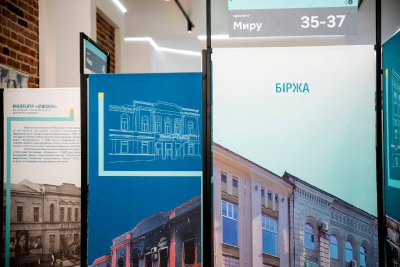🏙Виставка являє собою мистецький лабіринт і діалогову платформу, яка допомагає дослідити наслідки військового впливу на архітектуру міст України на прикладі Маріуполя та Бахмута. Проаналізована специфіка знищення культурного спадку, а також продемонстровані можливості із відновлення.
