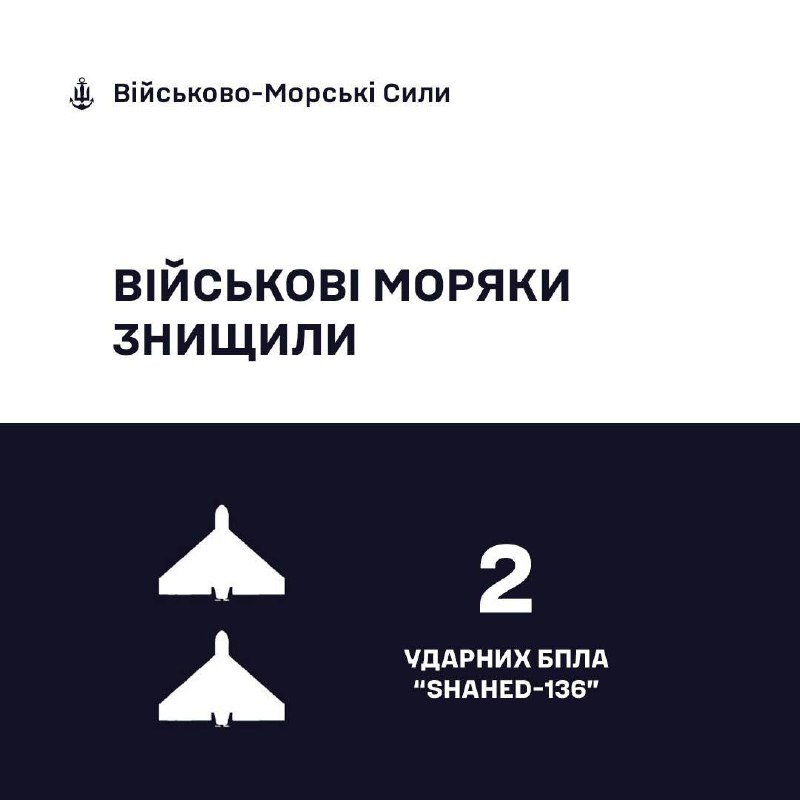На Одещині під час нічної атаки окупантів силами та засобами Військово-Морських Сил ЗС України було збито 2 дрони-камікадзе "SHAHED-136".