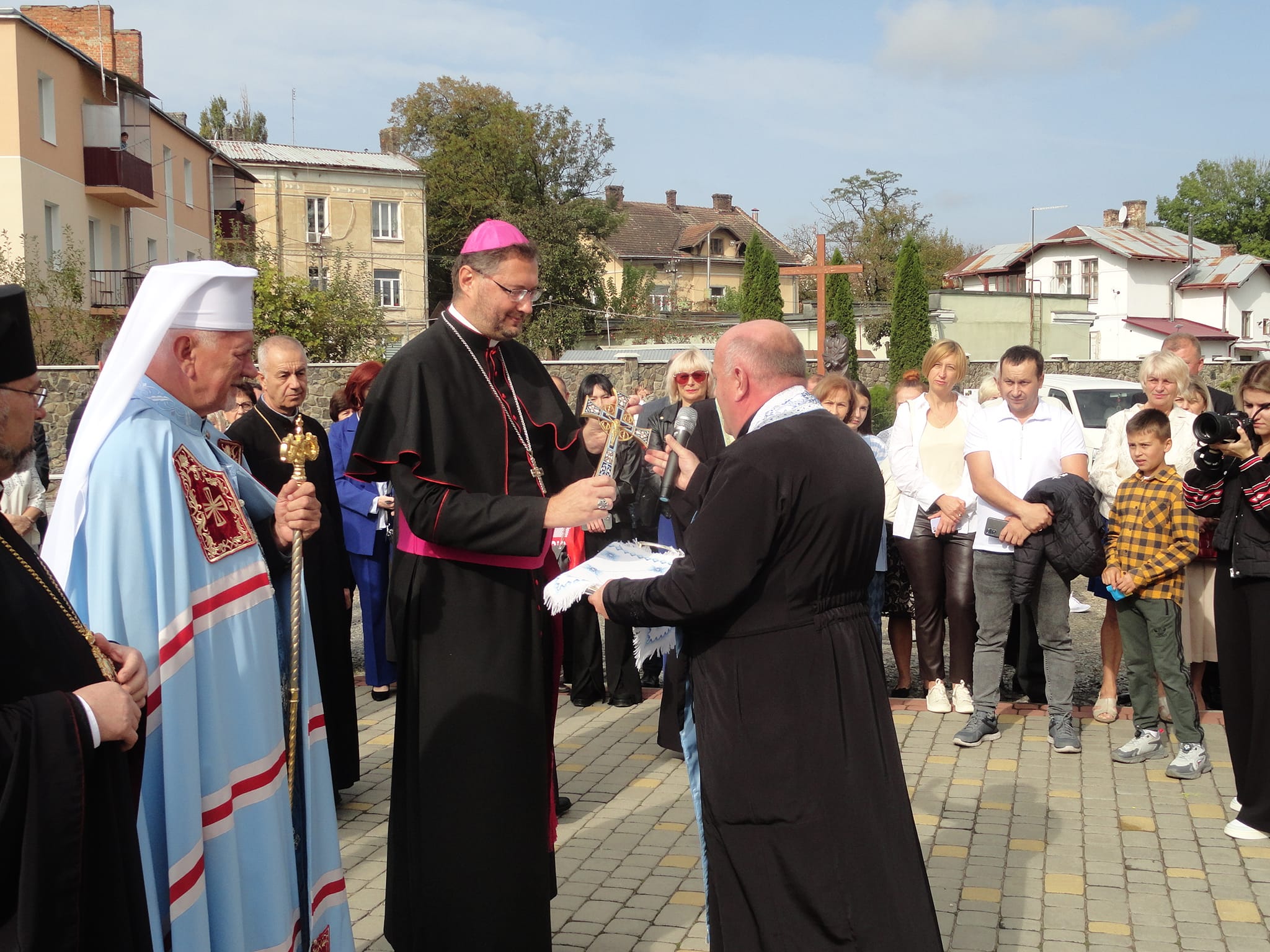 Опісля Владика Ярослав подякував Владиці Вісвальдасу за підтримку України у цей нелегкий час, зокрема за молитву за наш народ та візит до Самбора, а також подарував йому ікону Матері Божої Неустанної Помочі.