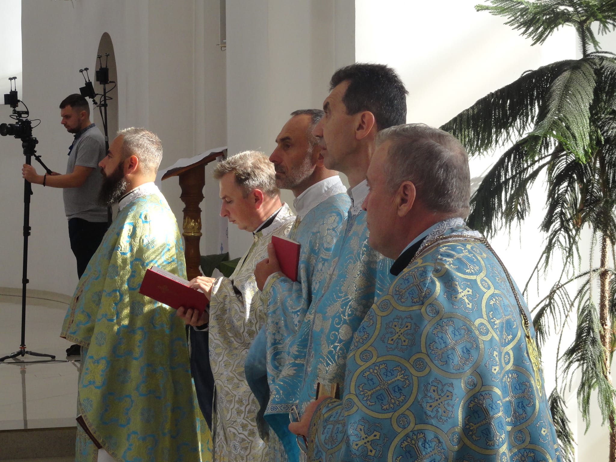 Співслужили Владиці Володимиру Апостольський нунцій в Україні Архієпископ Вісвальдас Кульбокас, Єпископ Самбірсько-Дрогобицький Владика Ярослав Приріз, Єпископ-помічник Самбірсько-Дрогобицької Єпархії Владика Григорій Комар, а також священнослужителі Івано-Франківської Архієпархії та Самбірсько-Дрогобицької Єпархії.