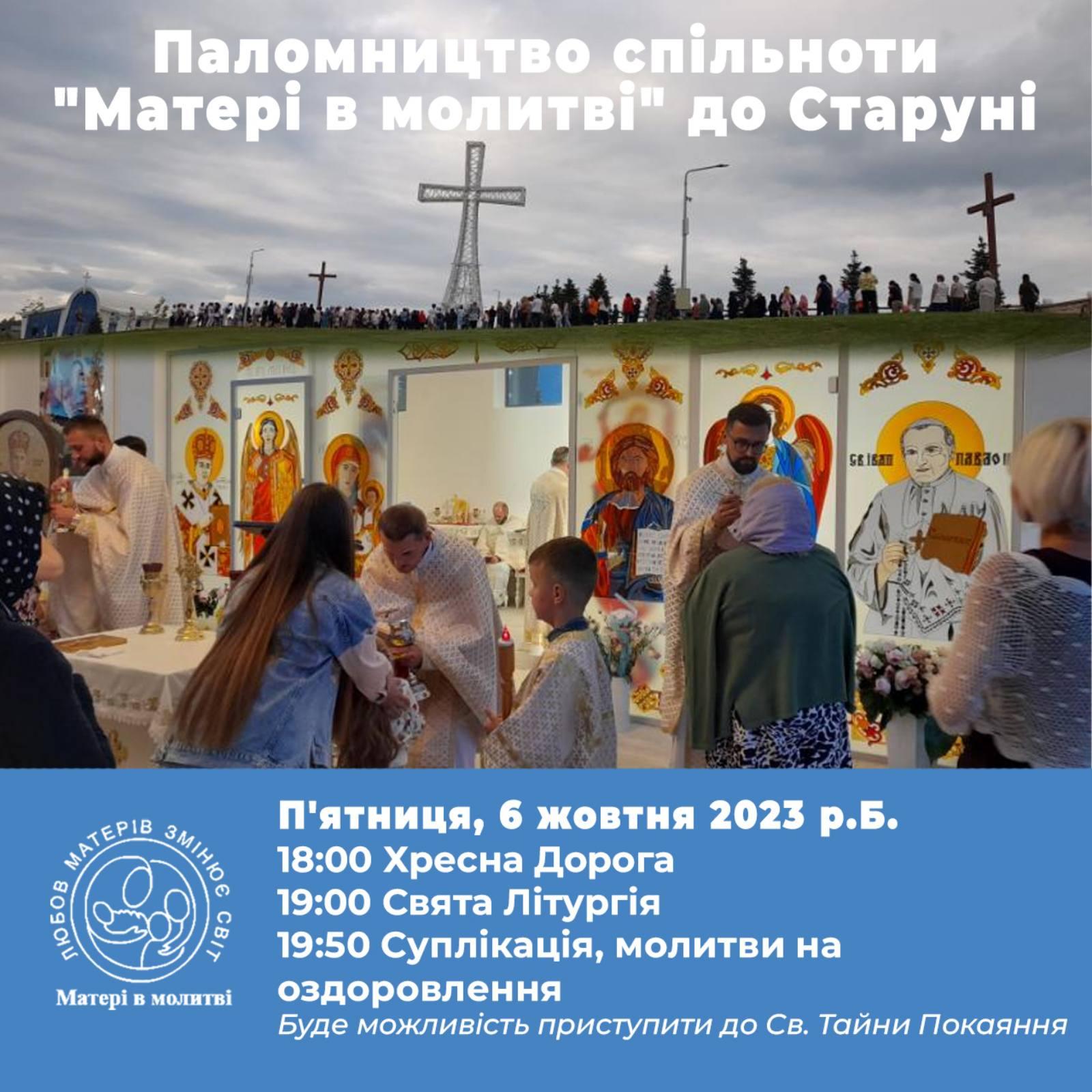 У п’ятницю, 6 жовтня, відбудеться особлива подія для спільноти «Матері в молитві» Івано-Франківської Архієпархії УГКЦ — паломництво до Старуні. Метою цього заходу є спільна молитва, об’єднання вірян, а також духовний відпочинок.