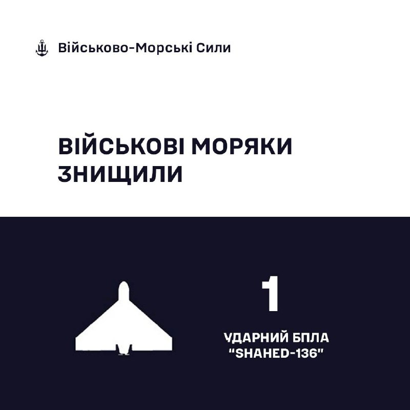 Одним з підрозділів Військово-Морських Сил на півдні України знищено "Shahed-136"