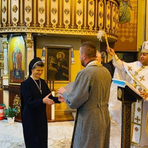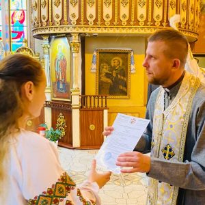 Після Літургії голова катехитичної комісії о. Іван Шуфлат від імені Владики Йосафата Мощича, Єпарха Чернівецького, вручив катехитам з парафій Чернівецької Єпархії катехитичні місії.