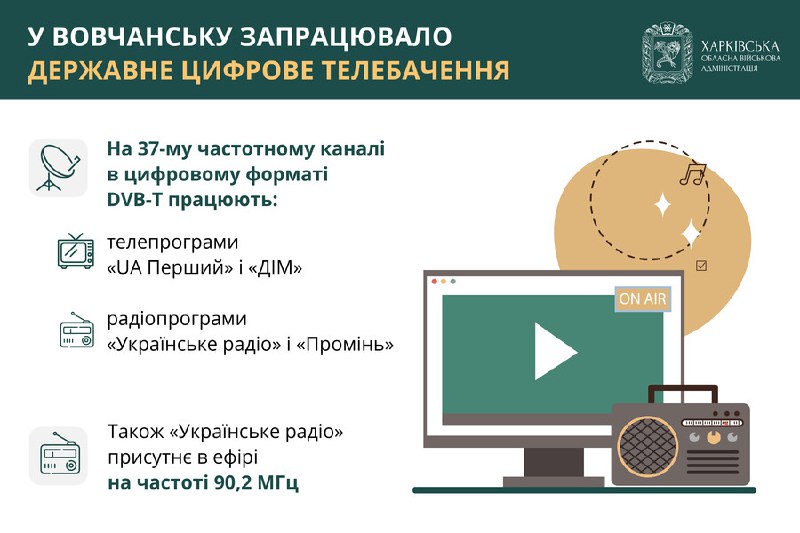 Відтепер цифрове телебачення запрацювало у м. Вовчанськ Чугуївського району.