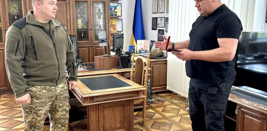 Начальник військової адміністрації Ярослав Коминський з нагоди Дня захисника та Захисниці України відзначив бойового офіцера, командира 24 ОМБр імені короля Данила медаллю Яворівської ВА “За вірне служіння Україні” та подякував за самовідданість та мужність на службі.