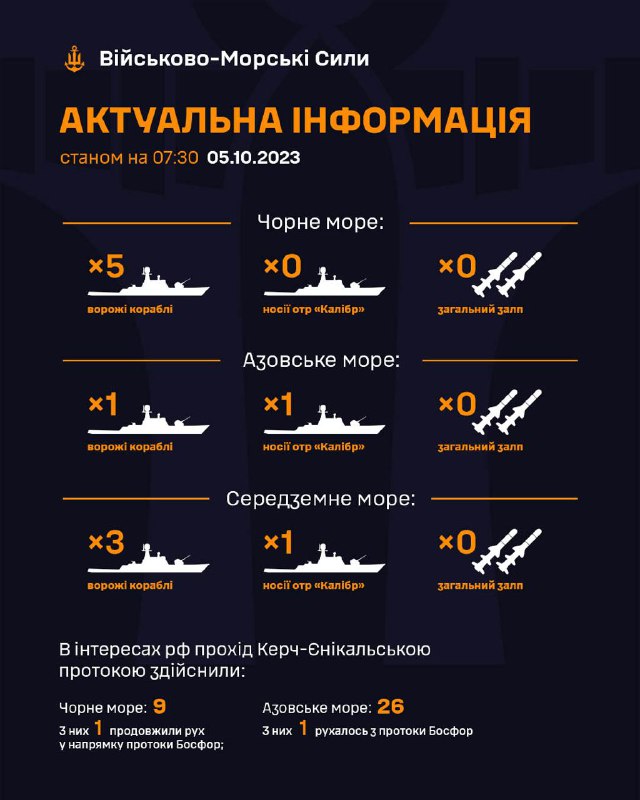 в Чорному морі на бойовому чергуванні знаходиться 5 ворожих кораблів, ;