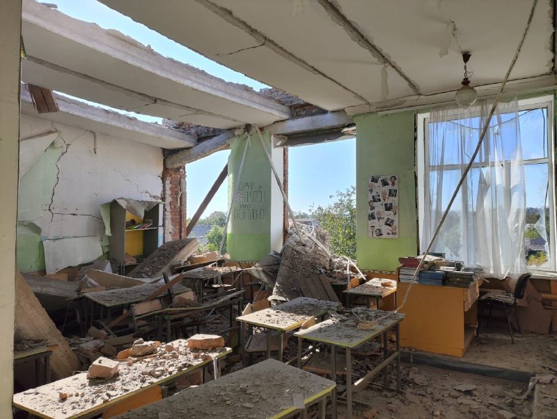 Ракетний удар по Нікополю. Російські виродки поцілили в гімназію.