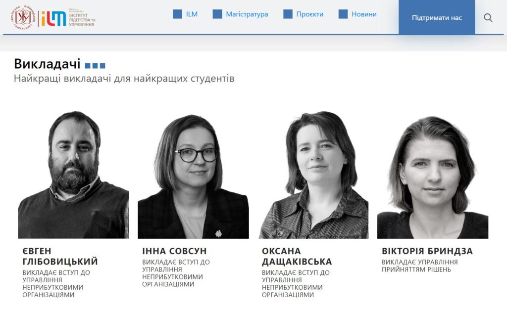 Нагадаємо, згідно з інформацією, яка була наявна на сайті ІЛУ УКУ, Совсун викладала на магістерській програмі управління неприбутковими організаціями. Її ім’я згадувалося в блоці «Найкращі викладачі для найкращих студентів».
