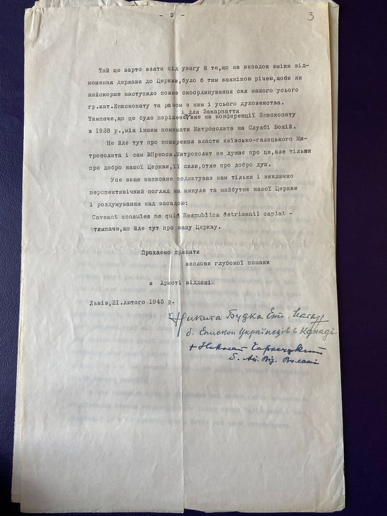 Лист єпископів Микити Будки та Миколая Чарнецького до Йосифа Сліпого, який після смерті митрополита Андрея Шептицького 1 листопада 1944 року став його наступником, був написаний за надзвичайно тяжких історичних обставин, у яких знайшлася ціла Українська Греко-Католицька Церква. Радянські війська увійшли знову до Львова 27 травня 1944 року. Митрополит Андрей, намагаючись знайти контакти з новою владою, висилає до Москви на перемовини делегацію на чолі з своїм рідним братом Архимандритом Студитів Климентієм Шептицьким. І хоча делегацію була досить ввічливо прийнято з запевненням про порозуміння, то вже 15 березня 1945 року голова ради у справах Російської Православної Церкви полковник Карпов надіслав Йосифу Сталіну на затвердження Інструкцію ліквідації УГКЦ. Кожен з греко-католицьких єпископів станом на лютий 1945 року був дуже добре свідомий того, що їхня Церква знаходиться напередодні великих переслідувань. З огляду на це, вони намагалися якнайкраще приготовити себе, своїх священників і вірних до цієї страшної хвилі. Єпископи Микита Будка і Миколай Чарнецький, пишучи листа до Йосифа Сліпого як наступника митрополита Андрея, звертають увагу на те, що, незважаючи на темні часи, настала хвиля, коли усі українські землі, які колись перебували під владою різних держав, нарешті об’єднані в одне ціле – в одну Українську державу. І хоча ця держава не є тією, про яку мріяли і за яку боролися покоління Українців, вони вважають, що Греко-Католицькій Церкві слід скористатися з цього, щоби об’єднати воєдину усю церковну структуру УГКЦ. Автори листа акцентують на тому, що в обличчі великих випробувань, усім греко-католицьким єпископам радянської України слід об’єднатися під одним проводом. А цей провід належить Митрополитові Львівському, який після ліквідації Унії на Лівобережній Україні російським царським урядом, залишається історично і канонічно залишається Митрополитом Київським і Галицьким. З огляду на це саме він повинен стати символом єдності єпископату, вірних та й взагалі цілої УГКЦ. Як приклад руху в сторону об’єднання усіх церковних сил вони подають кроки, що їх робить Російська Православна Церква, яка намагається об’єднати під одним началом усі свої парафії, єпархії, тобто усю церковну структуру. Окрему увагу згадані єпископи звертають увагу на Закарпаття. Вони покликаються на рішення Конференції Греко-Католицьких Єпископів від 1928 року, на якій було прийнято рішення поминати Митрополита Львівського як історичного і канонічного наступника Митрополита Київського і Галицького на Літургії в цілій Мукачівській єпархії. Наприкінці листа обидва згадані єпископи наводять як аргумент латинське прислів’я, яке каже: «Caveant consules ne quid Respublica detrimenti capiat» (Нехай консули бережуть державу від збитку). На їхнє переконання, сама тепер, тобто станом на 21 лютого 1945 року, настав найбільш сприятливий час, щоб на перспективу об’єднати цілий Український нарід не тільки політично, але і церковно. Найголовнішим аргументом об’єднання усіх греко-католицьких єпархій в на той час радянській Україні є, для авторів листа, передовсім спасіння людських душ, добро Церкви і запорука її сили. Читаючи рядки листа Микити Будки і Миколая Чарнецького до Йосифа Сліпого з теперішньої перспективи, усвідомлюю і подивляю надзвичайно їх надзвичайно перспективну 