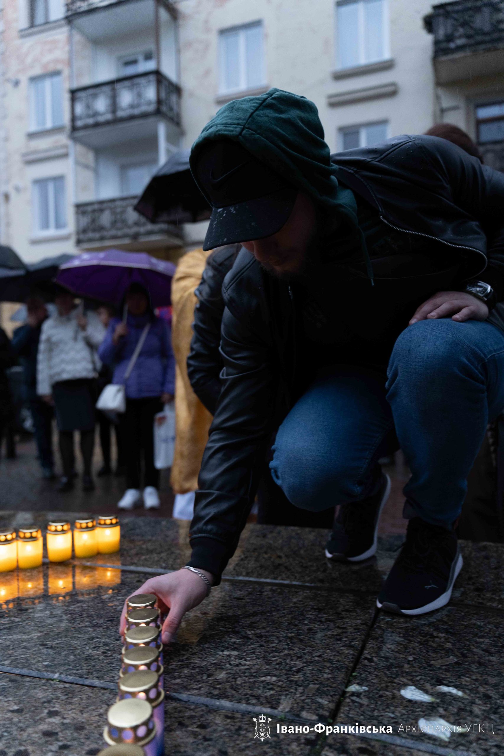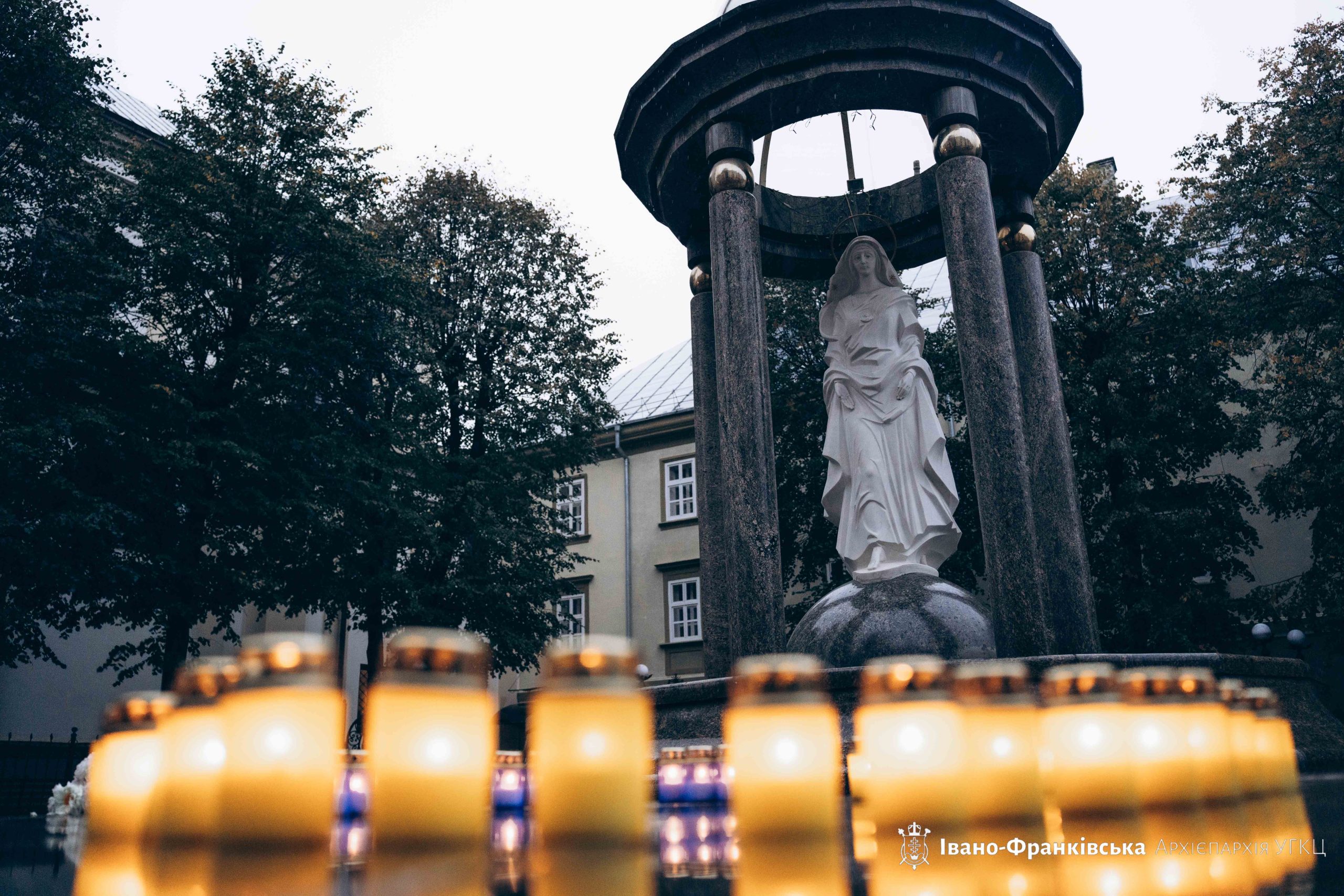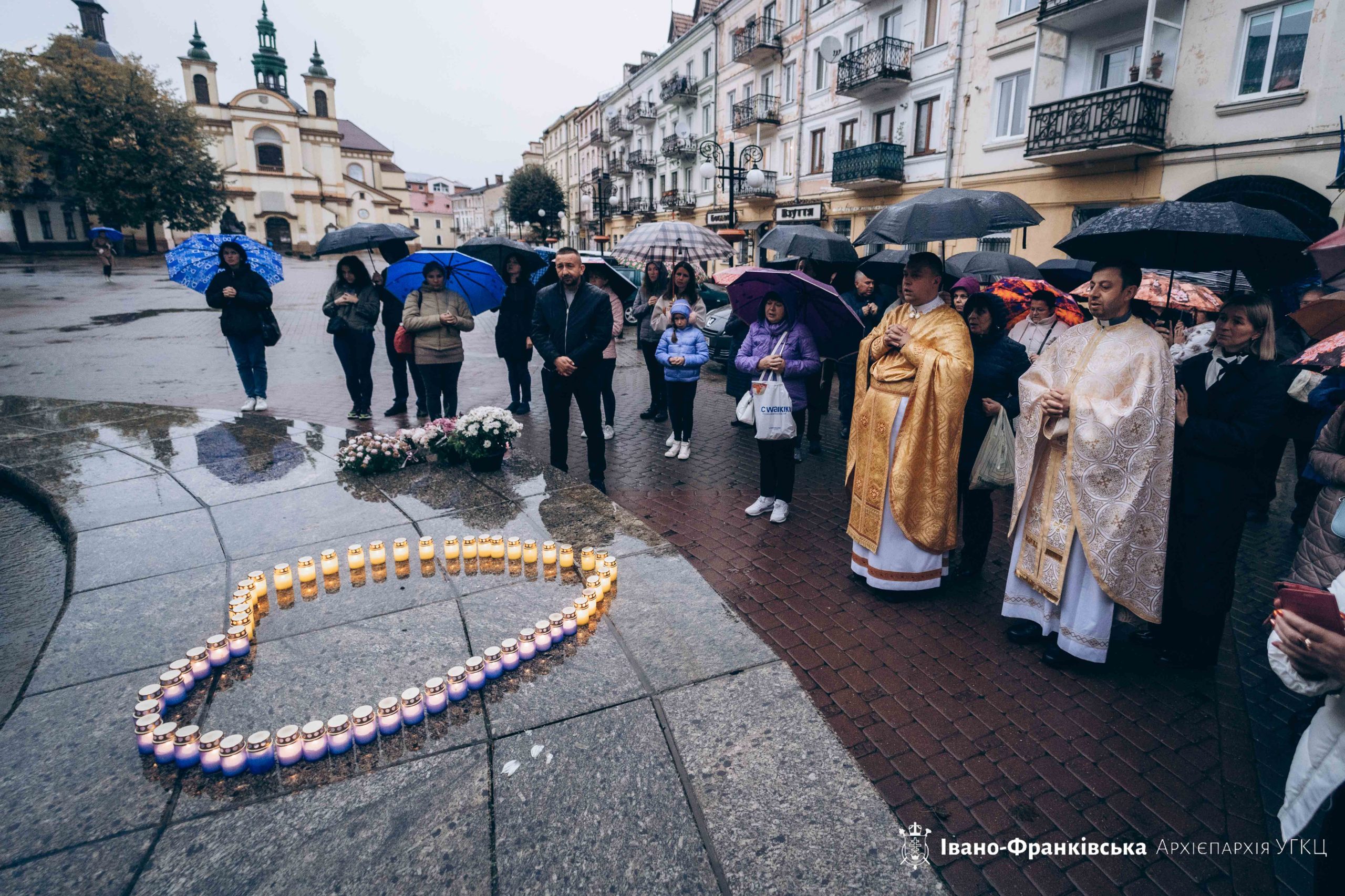 Опісля вірні та духовенство вийшли на площу Шептицького до ротонди Матері Божої, де у формі серця запалили синьо-жовті свічки на знак памʼяті про загиблих дітей. Тут всі спільно промовили тричі «Отче Наш» та «Богородице Діво» за душі немовлят.