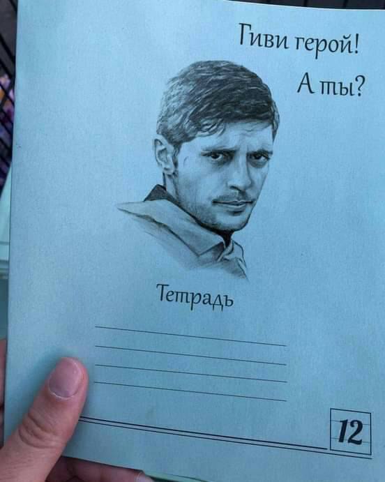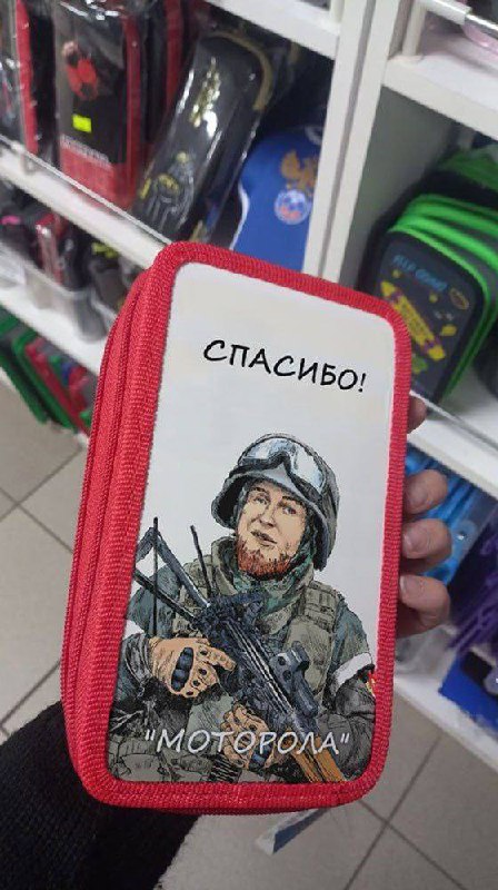 В магазинах тимчасово окупованого міста можна знайти шкільні пенали із зображенням загиблого командира сепаратистів так званої «днр» «мотороли» та зошити із воєнним злочинцем, бойовиком «гіві».