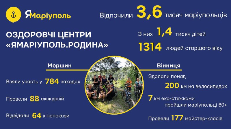 ☀️Завдяки Маріупольській міській раді та підтримки приймаючих громад, з червня по жовтень маріупольці мали можливість відпочивати в оздоровчих центрах "ЯМаріуполь. Родина" у Вінниці та Моршині.