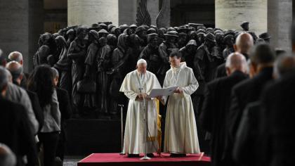 «Подібно до доброго самарянина, ми покликані бути поруч з усіма сьогоднішніми подорожніми, рятувати їхні життя, зцілювати їхні рани, полегшувати їхній біль. Для багатьох, на жаль, вже занадто пізно, і нам не залишається нічого іншого, як плакати над їхніми могилами, якщо вони є», – сказав Папа Франциск, промовляючи до учасників молитви за мігрантів і біженців, яка ввечері, 19 жовтня 2023 р., відбулася в рамках першої сесії XVI Звичайної Асамблеї Синоду Єпископів. Після завершення XIII загального зібрання, присвяченого представленню напрацювань робочих груп щодо четвертої частини Робочого документа, учасники асамблеї перейшли із залу Павла VI на площу Святого Петра до встановленого на ній пам’ятника мігрантам. Там відбулася Літургія слова, зосереджена навколо притчі про милосердного самарянина.