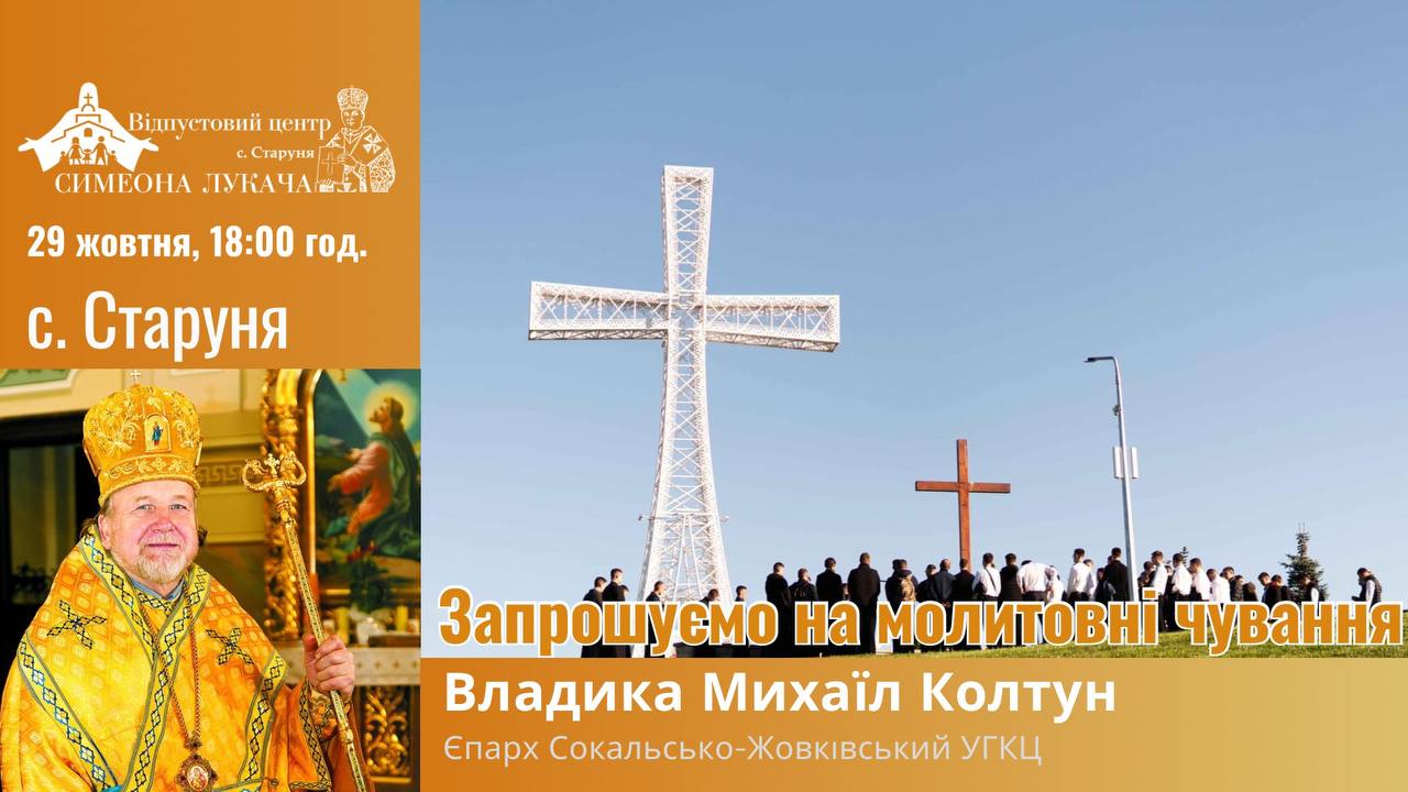 У ніч з 29 на 30 жовтня у Відпустовому центрі блаженного Симеона Лукача, що в с. Старуня, відбудуться традиційні нічні чування. Цього місяця моління очолить Владика Михаїл Колтун, ЧНІ, Єпарх Сокальсько-Жовківський.