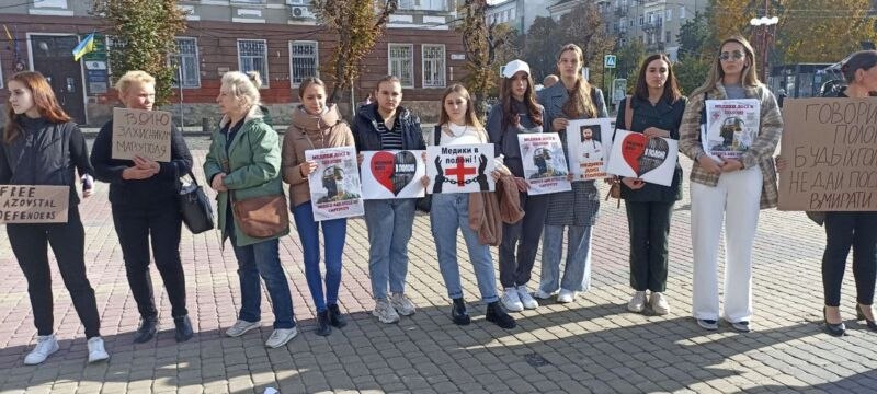 «Щодня наші військові терплять знущання в нестерпних умовах. Щодня їх здоров’я погіршується, а їхнє життя — під загрозою. Ми з Маріуполя, тому вирішили провести цю акцію», – повідомила співорганізаторка акції Наталя.