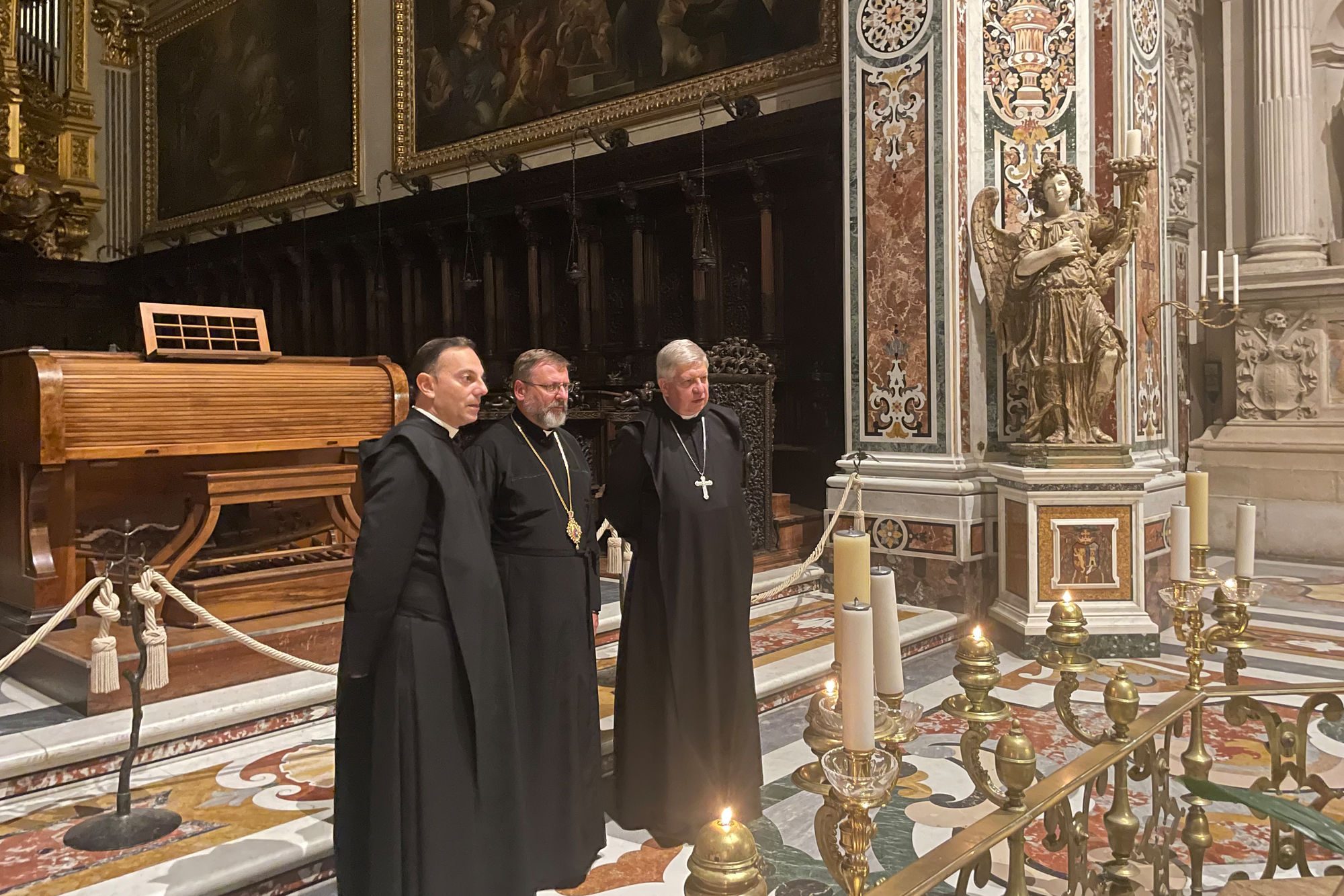 Блаженніший Святослав також зустрівся з абатом монастиря о. Лукою Фалліка та відповідальним за зовніші відносини бр. Луїджі ді Буссоло. Глава УГКЦ розповів про ситуацію в Україні та служіння Церкви в умовах війни, а також попросив монахів-бенедектинців молитися за справедливий мир для України. Окрему увагу було приділено темі вимушених мігрантів з України, їхній культурній та освітній інтеграції в італійське суспільство.