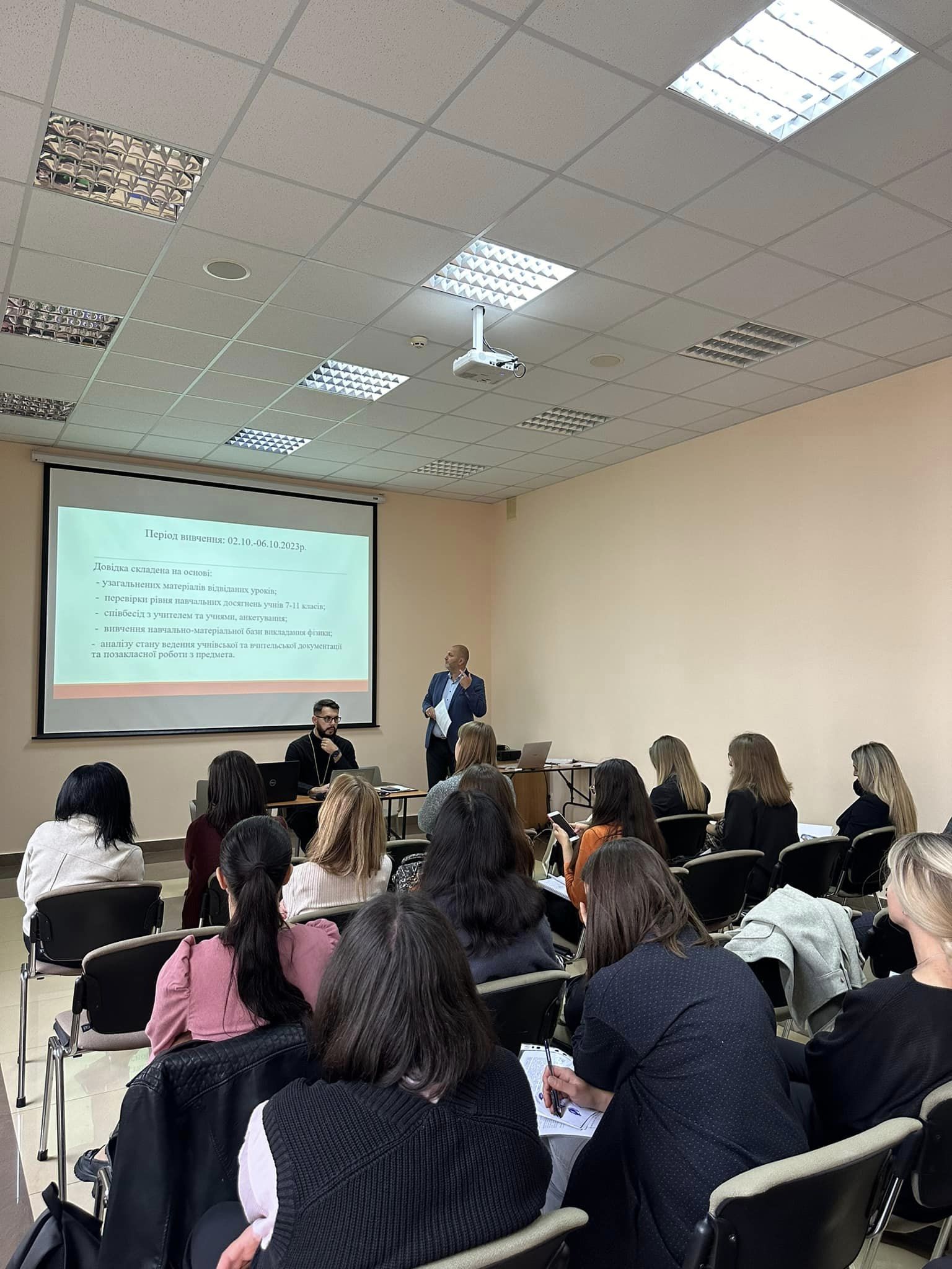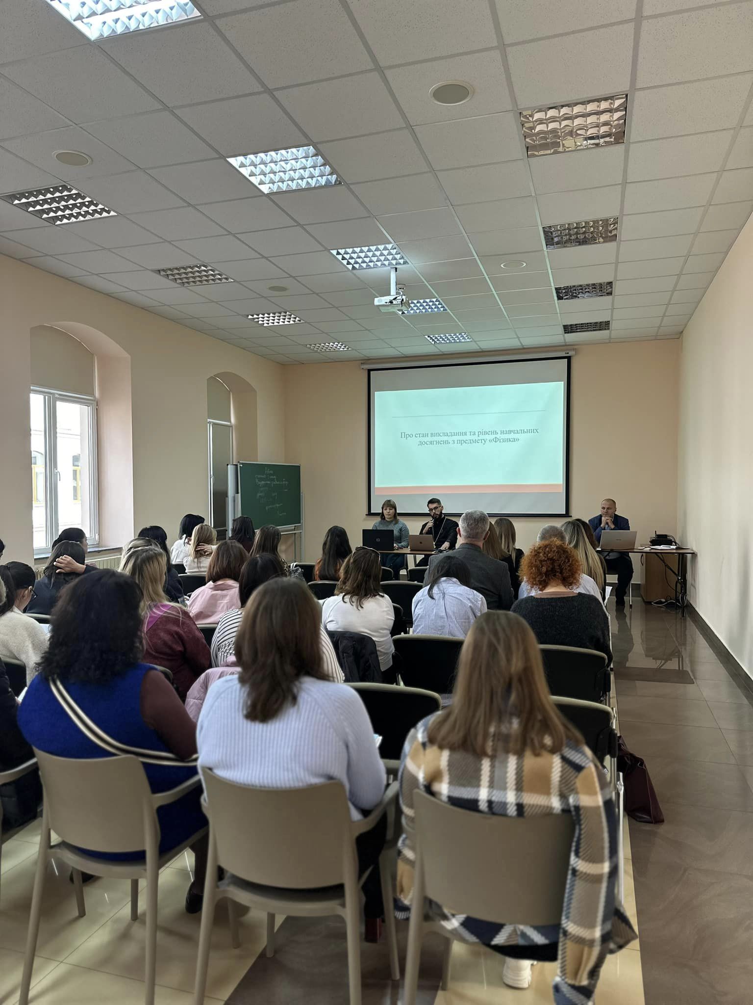 Опісля виступив заступник директора з навчальної роботи п. Андрій Лемко, який доповів про аналіз вивчення предмета фізики у ліцеї, про зміни в розкладі, про підвищення кваліфікації педагогічних працівників та педагогічну інтернатуру.